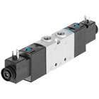 Prozess- und Medienventile, Wegeventile elektrisch betätigt, vorgesteuert, pneumatische Federrückstellung.