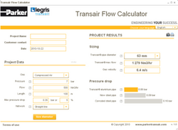 Der Parker Transair Flow Kalkulator ist ein praktisches und einfach zu bedienendes Hilfsmittel für die Dimensionierung Ihrer Rohrleitung. Geben Sie dazu die Länge der Rohrleitung sowie den Betriebsdruck ein.