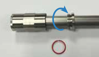Lösen Sie die Mutter von Hand und entfernen Sie den roten Demontagering.