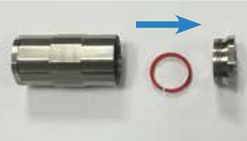 Schrauben Sie die Mutter ohne den roten Demontagering wieder auf den Verbinder. Der Verbinder kann jetzt wieder verwendet werden.